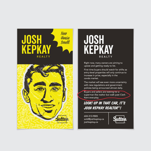 Working with Kreviii Design we came up with a print and digital arsenal that highlighted Josh as an approachable, modern, tech savvy realtor. We wanted Josh to really establish his brand for the long term so we also added some promotional items that doubled as great staging pieces at open houses like mugs and umbrellas as well as buttons and air fresheners for keep sakes.